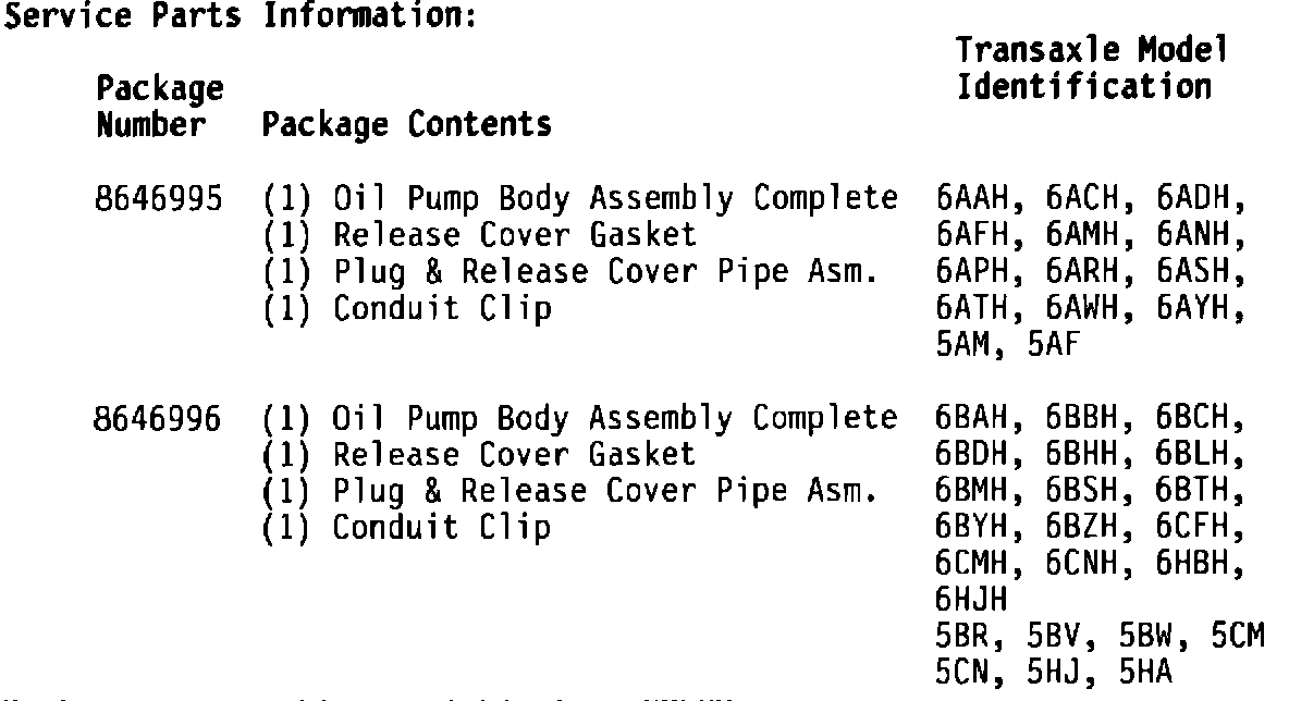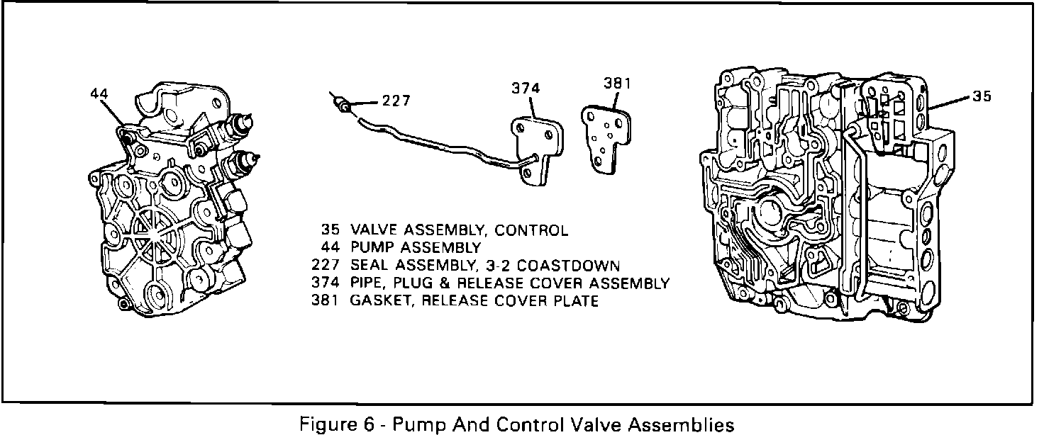 At start of production (SOP) 1987, an orifice pipe was added between the 1-2 servo release cover plate and the 3-2 coastdown valve to allow a smoother second gear apply (Figure 6). The four new parts installed as a set will service certain past model transaxles with a harsh 3-2 shift maneuver condition.