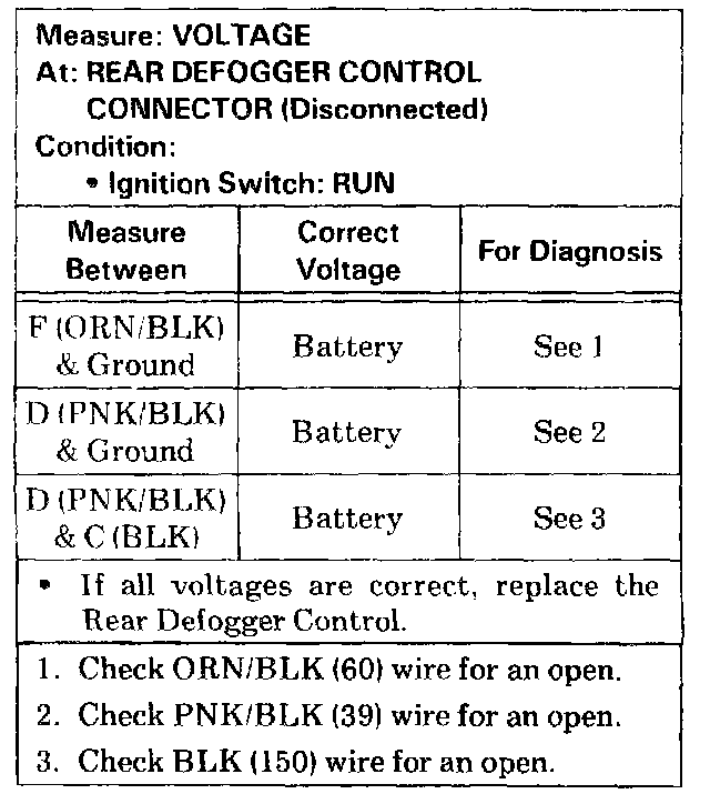 Test A: Rear Defogger Control Test
