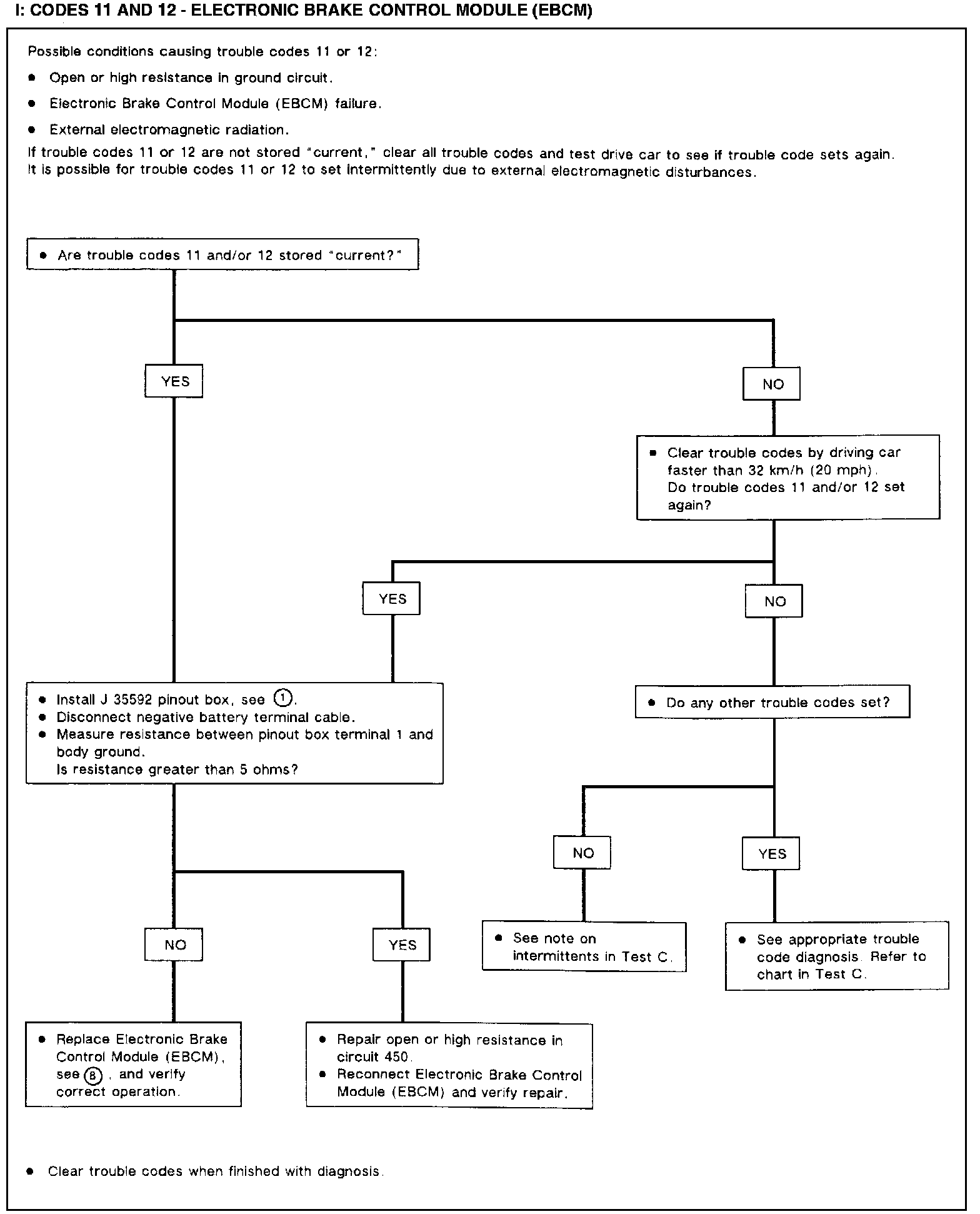 Chart I: Codes 11 and 12: Electronic Brake Control Module
