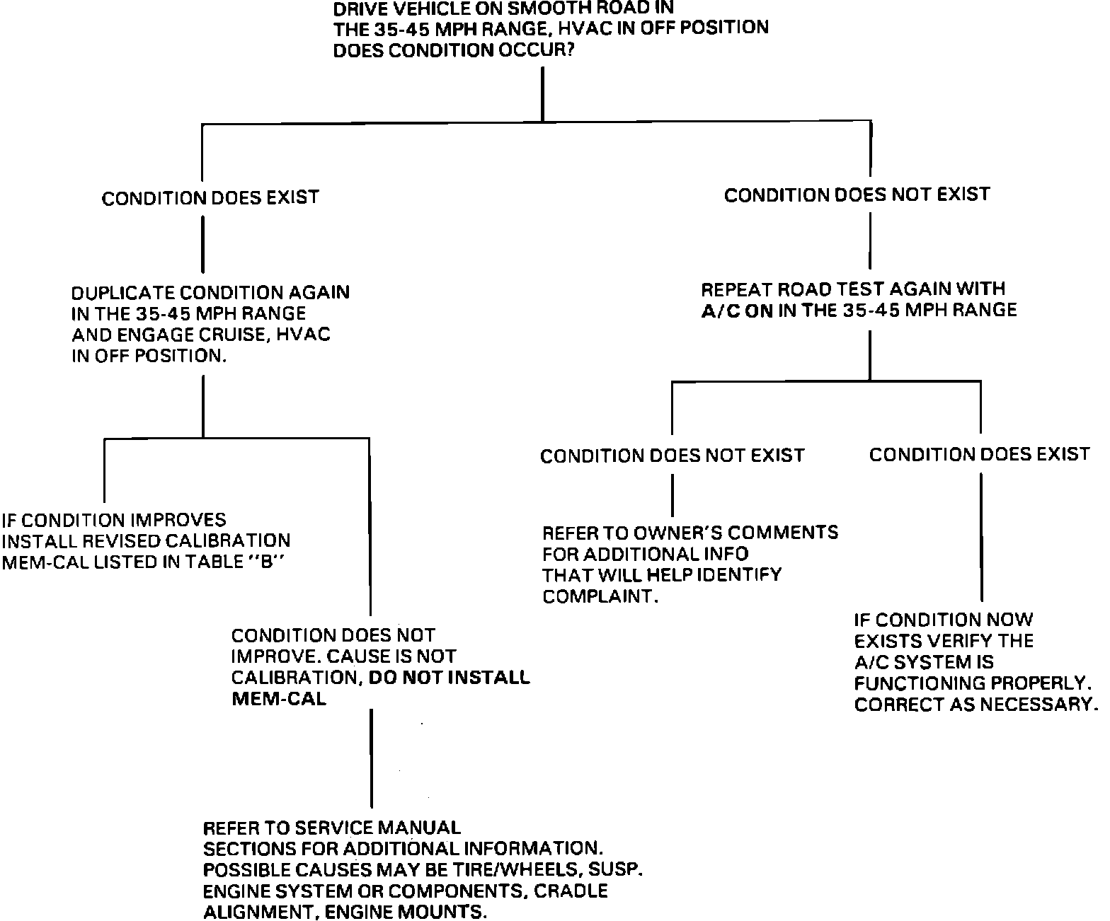 Should owners' comments indicate both conditions exist. Follow steps outlined in both procedures. The two conditions are independent of each other. If it is determined that a new revised calibration MEM-CAL is necessary to correct both conditions, select MEM-CALS listed in Table B.