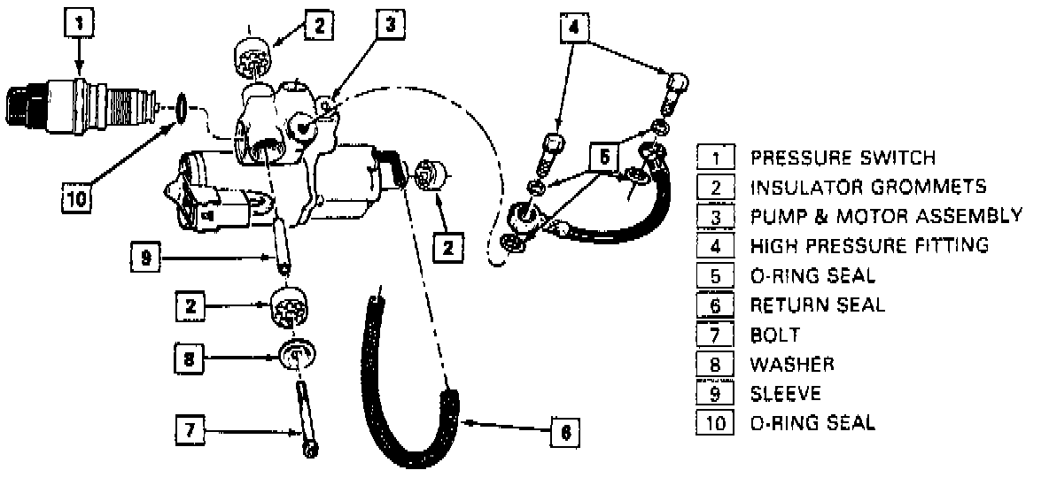 2. Electrical connector from pressure switch and electric motor. Remove fluid from reservoir.
