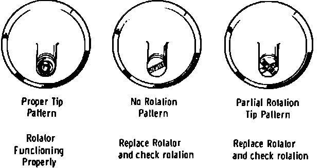 To check rotator action, draw a line across rotator body and down the collar. Operate engine at 1500 RPM, rotator body should move around collar. Rotator action can be in either direction. Replace rotator if no movement is noted.