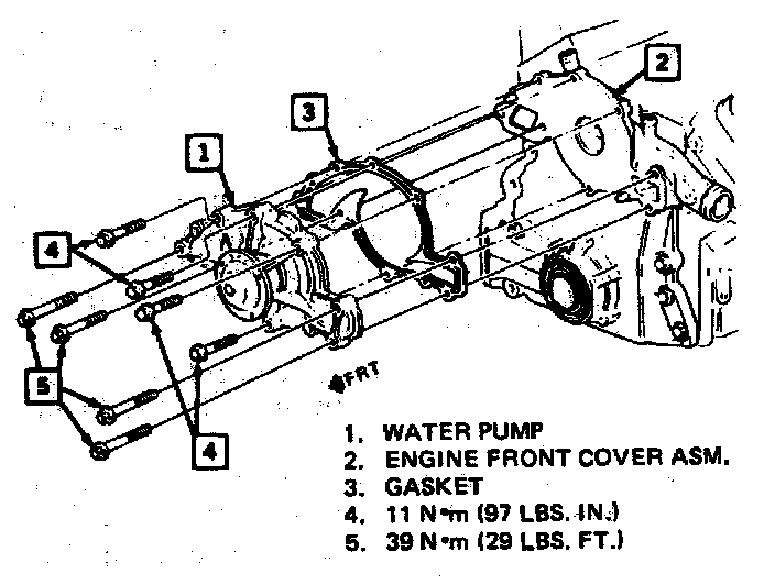 1. Using a new gasket, install the water pump on the engine. Tighten the bolts to specifications.