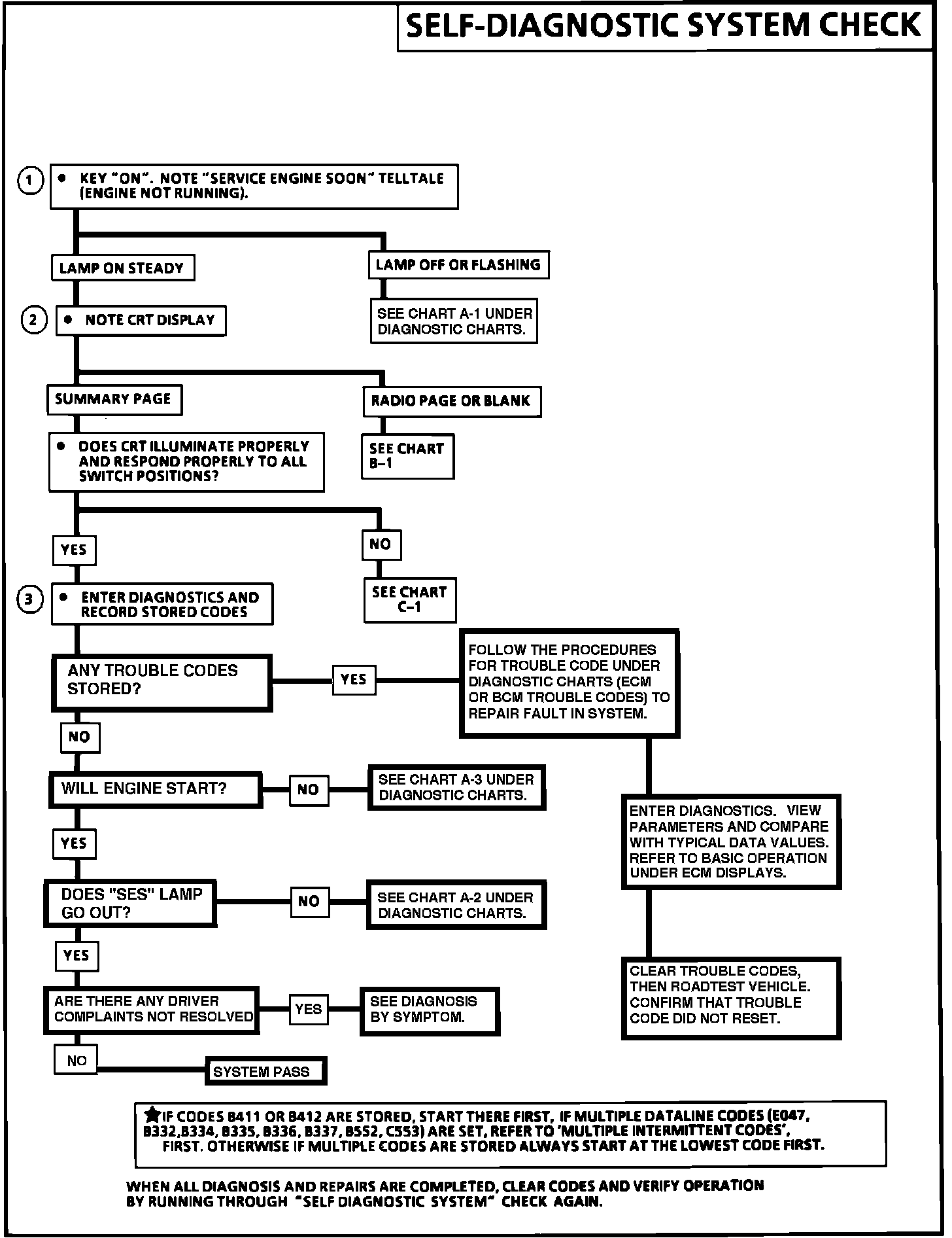 NOTE: The charts under DIAGNOSTIC CHARTS are driveability and component testing charts. The computer communication/display diagnostic charts are in TESTING PROCEDURES under SELF-DIAGNOSTIC SYSTEM.