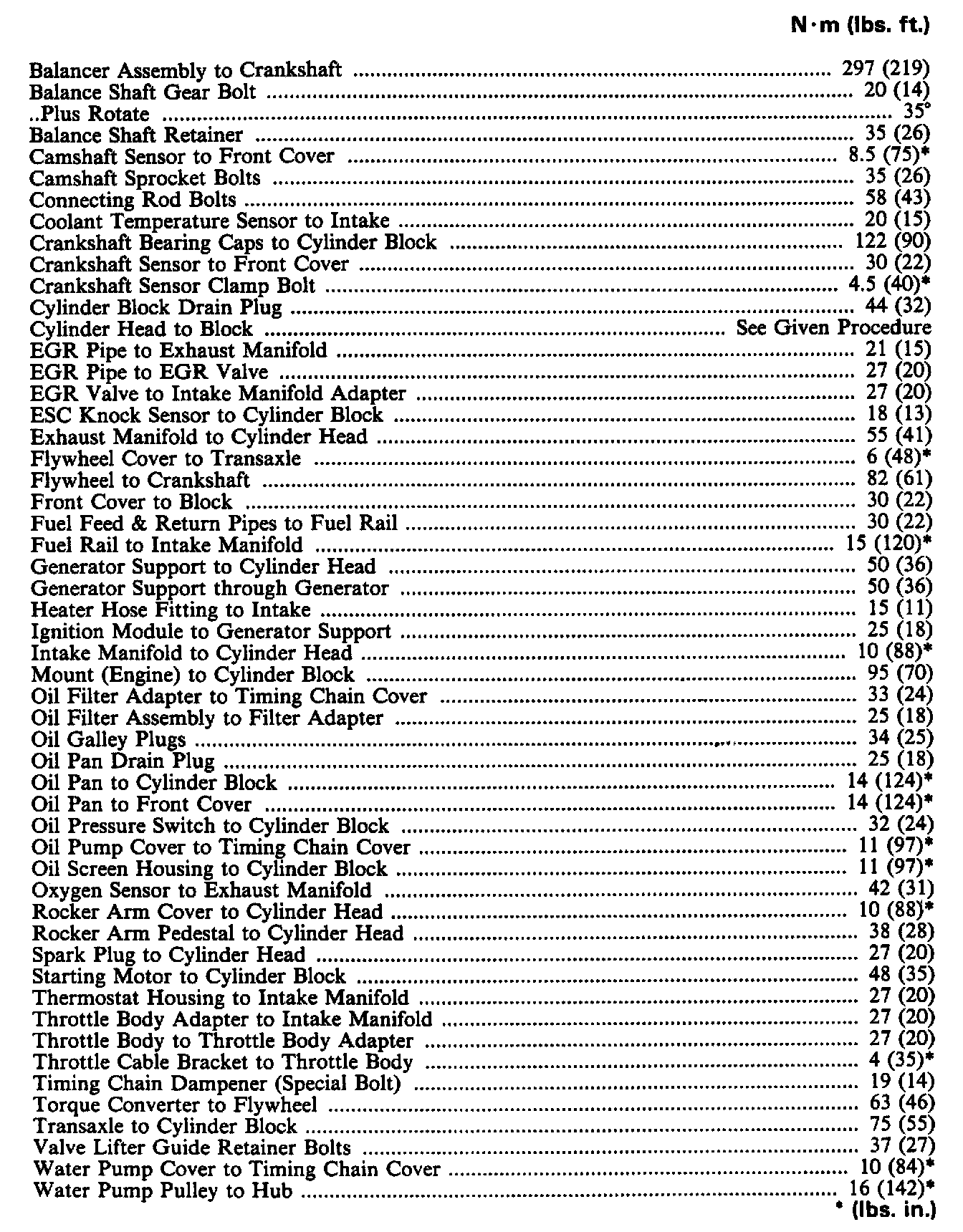 Torque Specifications: