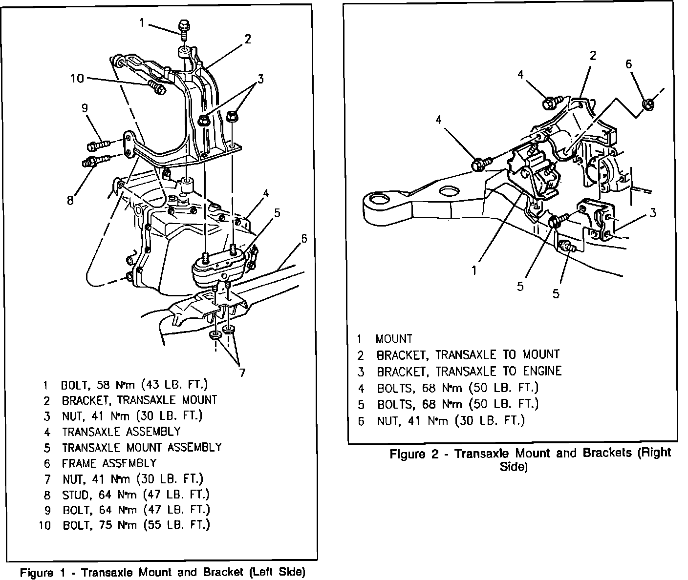 4. Upper bolts from left transaxle mount bracket, nuts from bracket to mount.