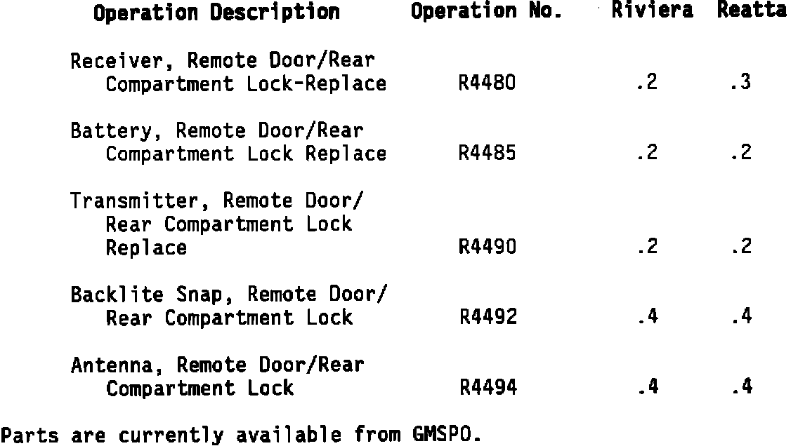 MODELS AFFECTED: 1989 - 1990 RIVIERA AND REATTA