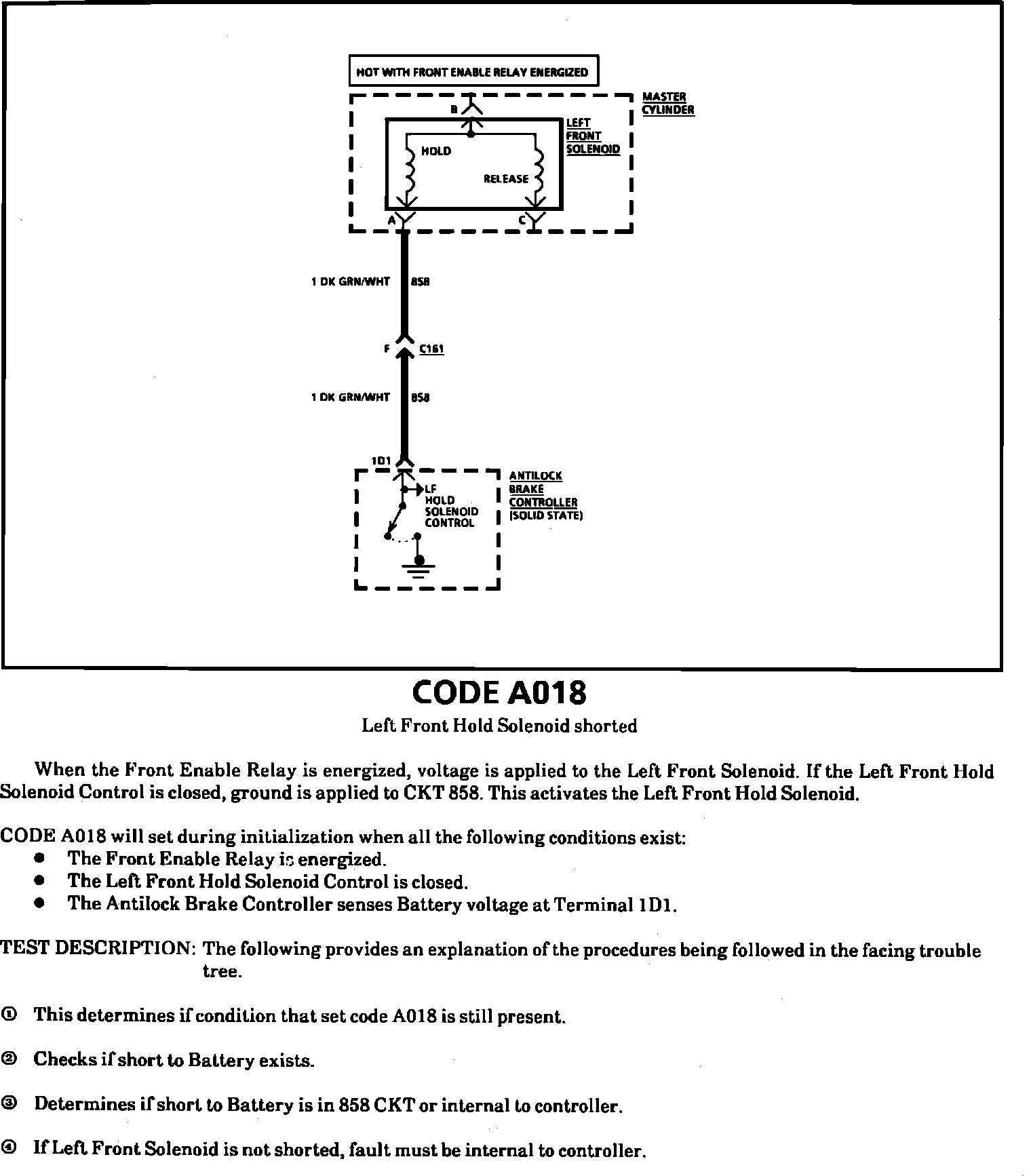 Fig. 27 Code A018, Left Front Hold Solenoid Shorted. (Part 1 Of 2).: