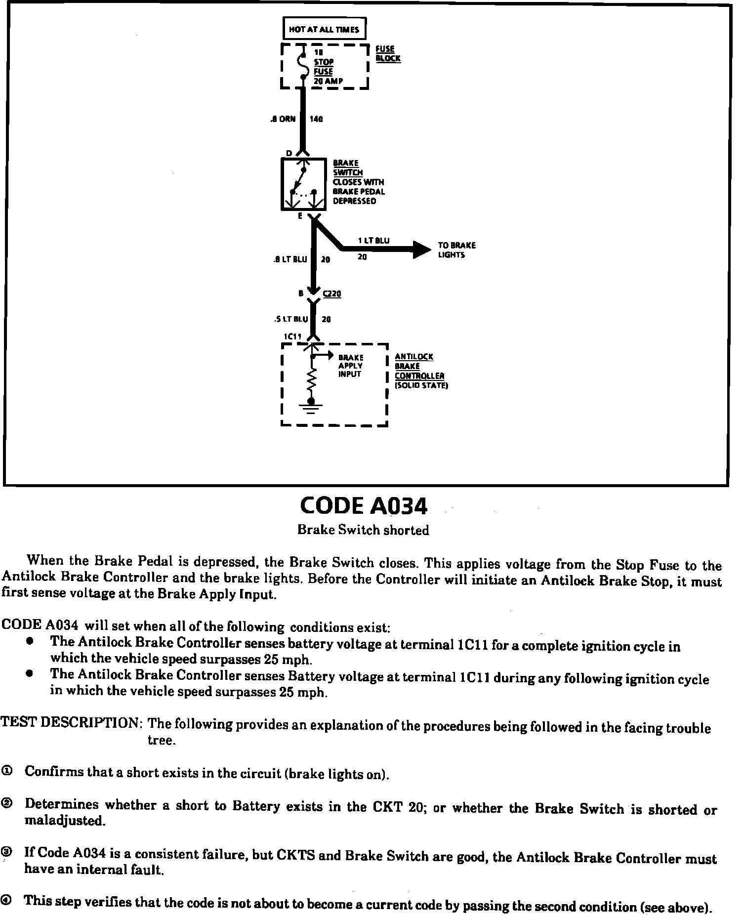 Fig. 44 Code A034, Brake Switch Shorted. (Part 1 Of 2).: