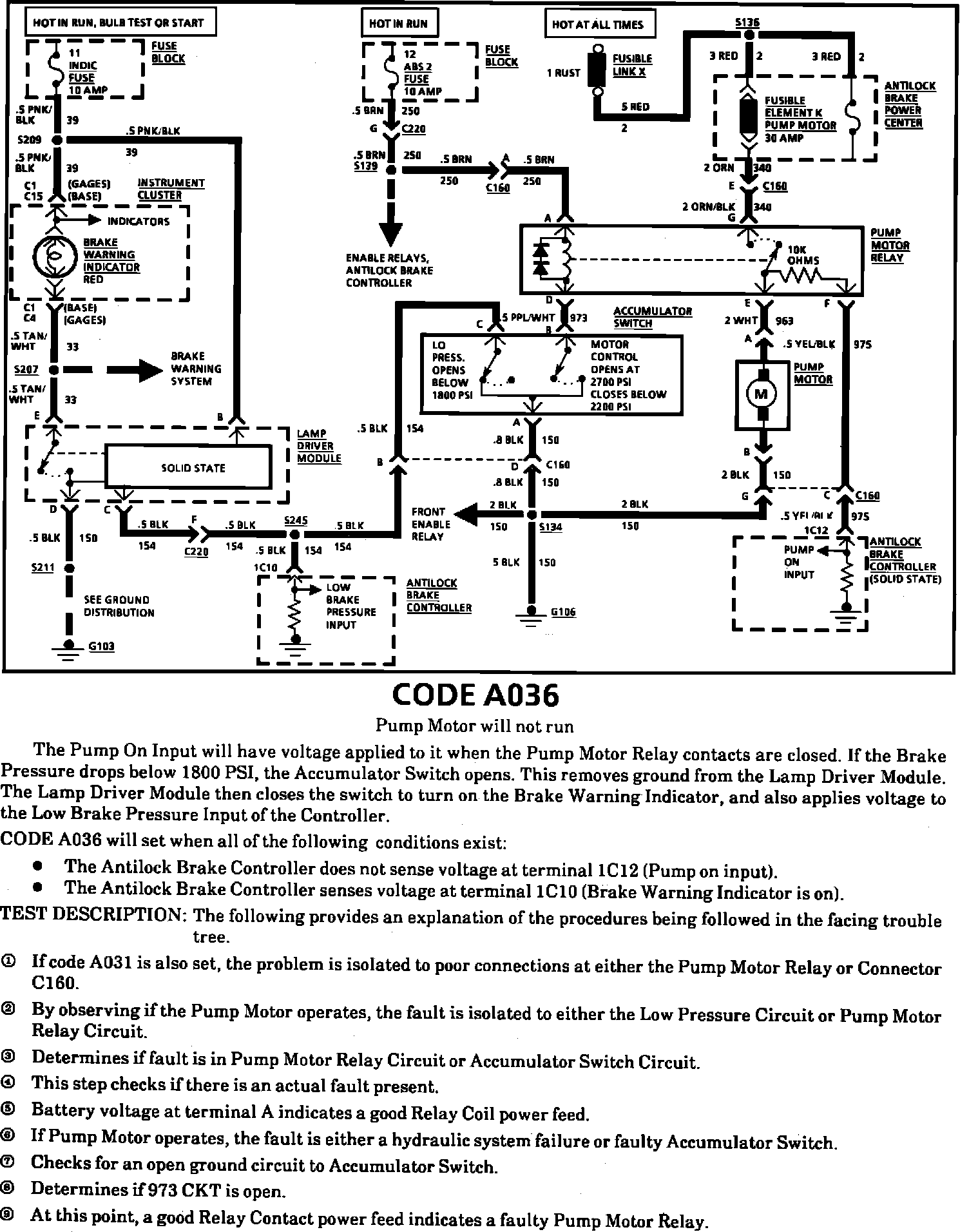 Fig. 46 Code A036, Pump Motor Will Not Run. 1989 Models. (Part 2 Of 2).: