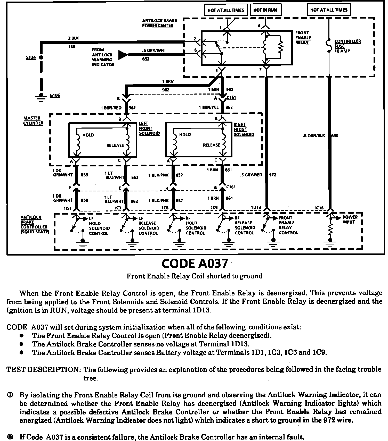 Fig. 48 Code A037, Front Enable Relay Coil Shorted To Ground. (Part 1 Of 2).: