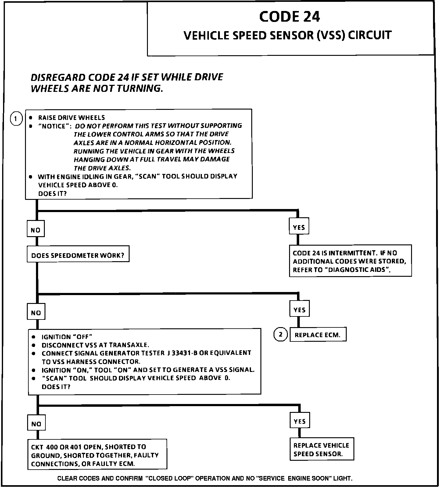 These conditions are met during a road load deceleration. Disregard Code 24 that sets when drive wheels are not turning.
