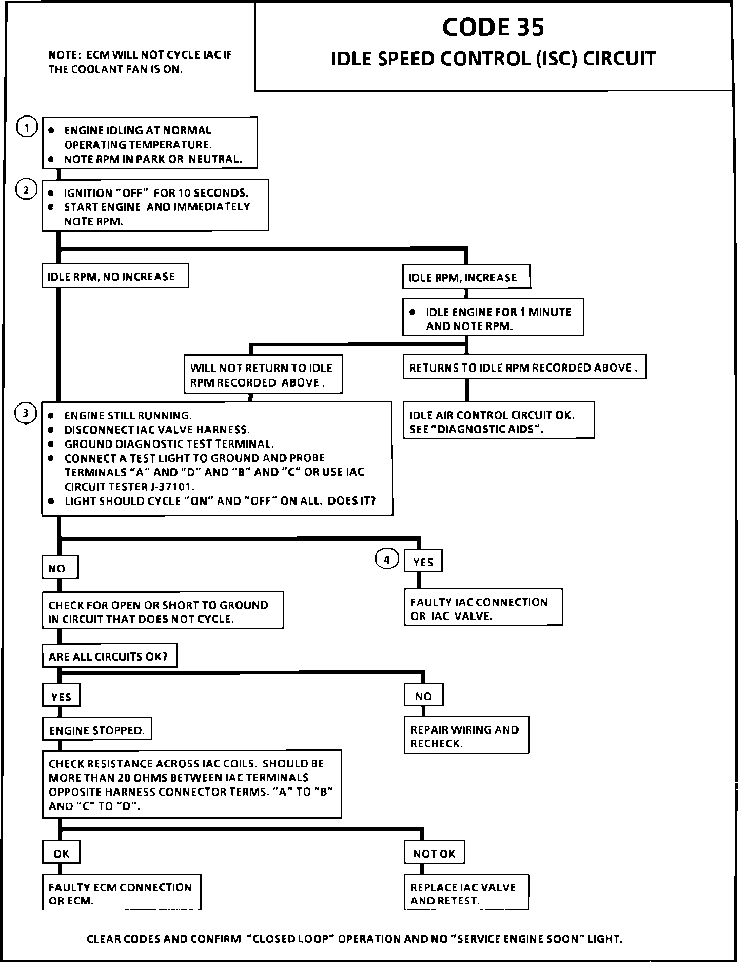 Code 35 will set when the closed throttle engine speed is 300 rpm above or below the desired (commanded) idle speed for 50 seconds.