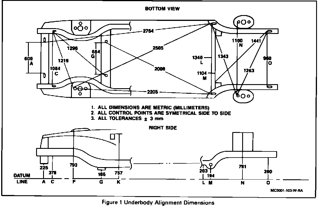 The Underbody Dimension Figures 1, 4 and 5 have been revised. The following Figures should be referred to when the Underbody Dimensions are being measured.