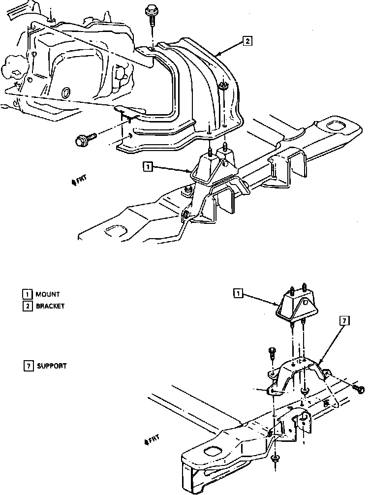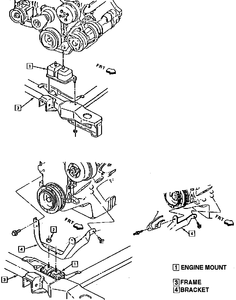 3. Raise engine enough to provide clearance, then remove mount to engine bracket attaching nuts and the mount.