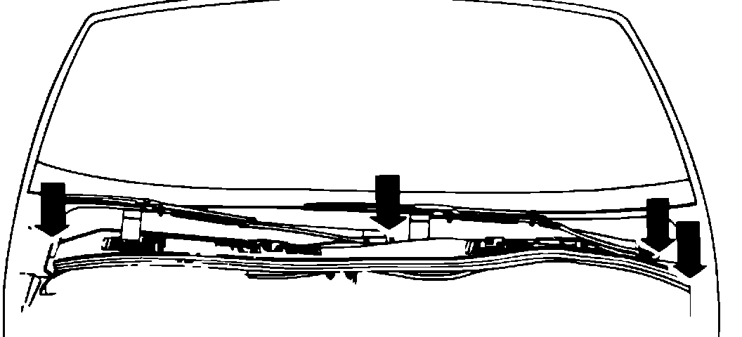 7. Check the heater/evaporator case and core for debris. Remove any debris that is present in the case or imbedded in the core. If a large amount of debris is present in the case, the air inlet screen will require sealing around the windshield wiper post holes and fender edges, as shown in Figure 1.