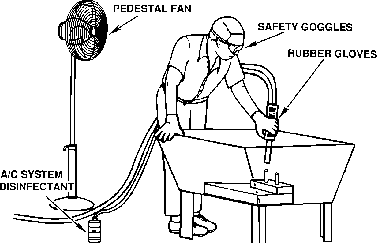 12. Position a pedestal fan, as shown in Figure 2, and turn on high speed to provide cross ventilation during the cleaning of the evaporator core.