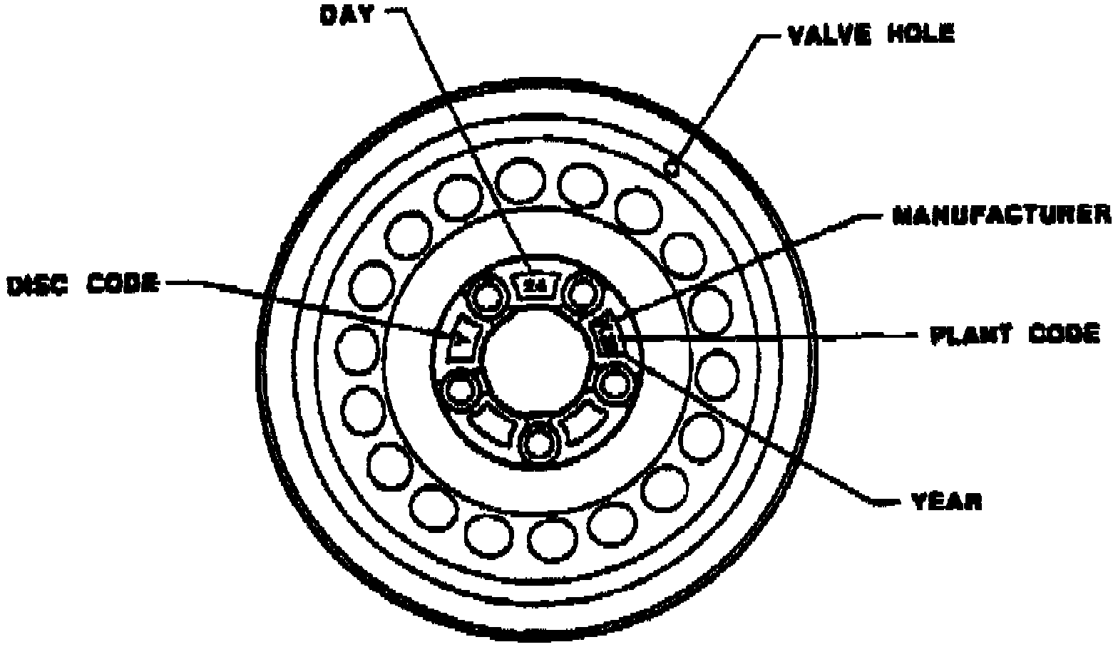 WHEEL MUST BE CLEANED TO ASSURE CORRECT READING AND INTERPRETATION OF DATE CODE STAMPED ON THE CENTER PORTION OF WHEEL.