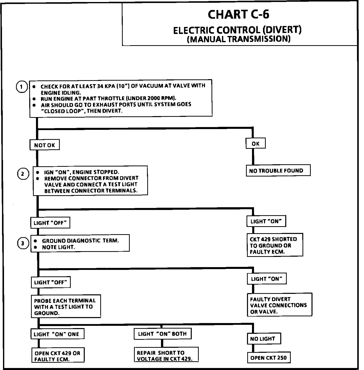 When the ECM grounds the circuit, the solenoid causes the valve to direct air to the exhaust ports. When de-energized, air diverts to the atmosphere, and air will be diverted to the ports provided that the valve has grounded at the ECM, and good manifold vacuum exists.