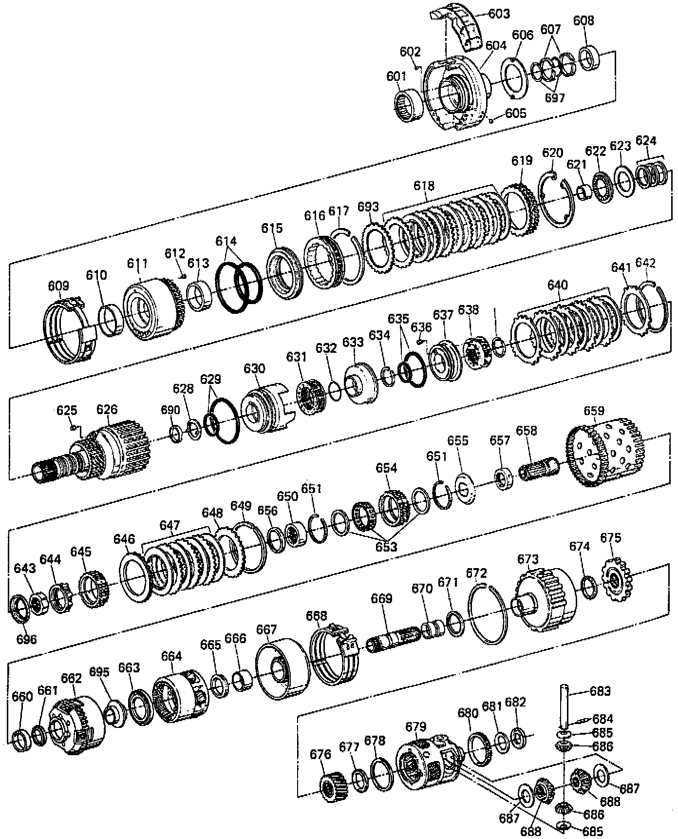 Fig. 16, Exploded view of transaxle internal components (Part 2 of 2). 1988-89 units: