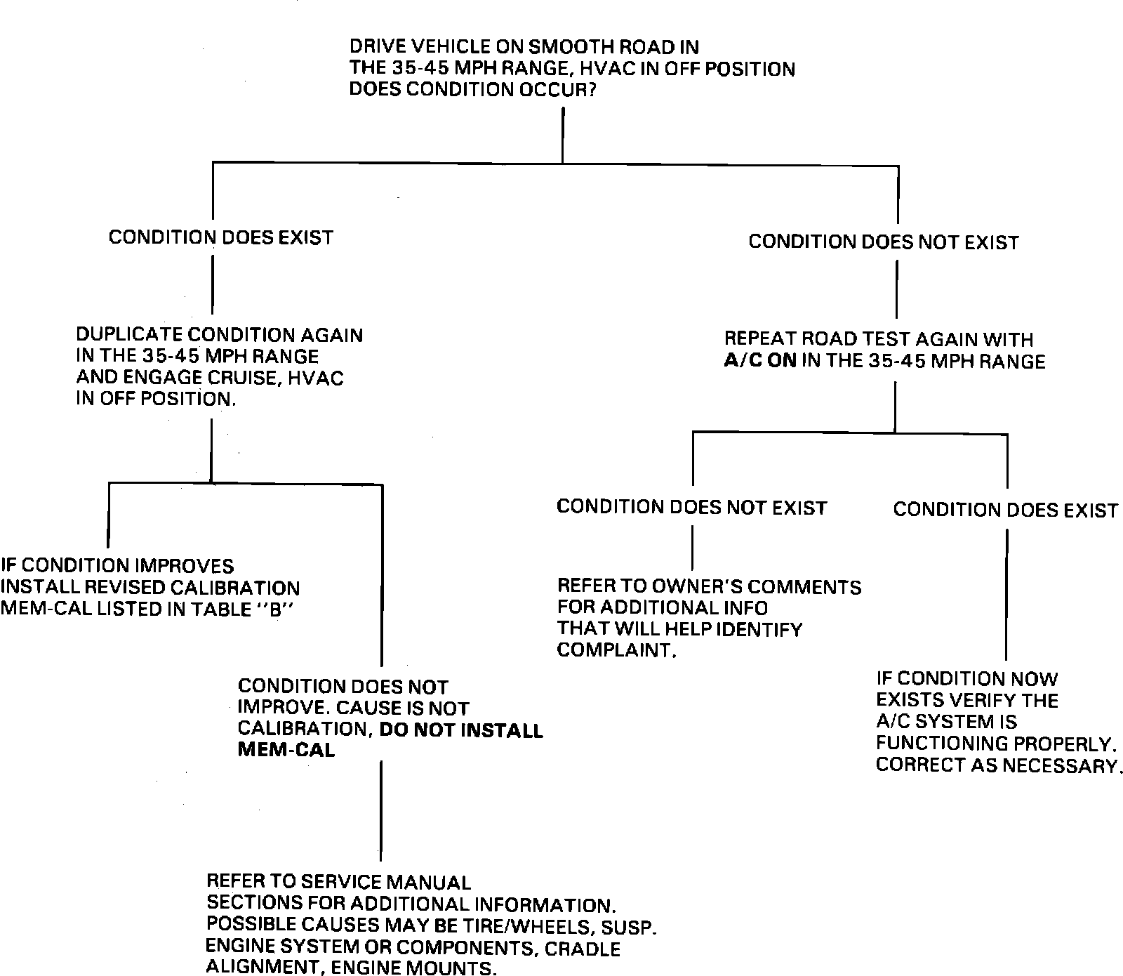 Should owners' comments indicate both conditions exist. Follow steps outlined in both procedures. The two conditions are independent of each other. If it is determined that a new revised calibration MEM-CAL is necessary to correct both conditions, select MEM-CALS listed in Table B.