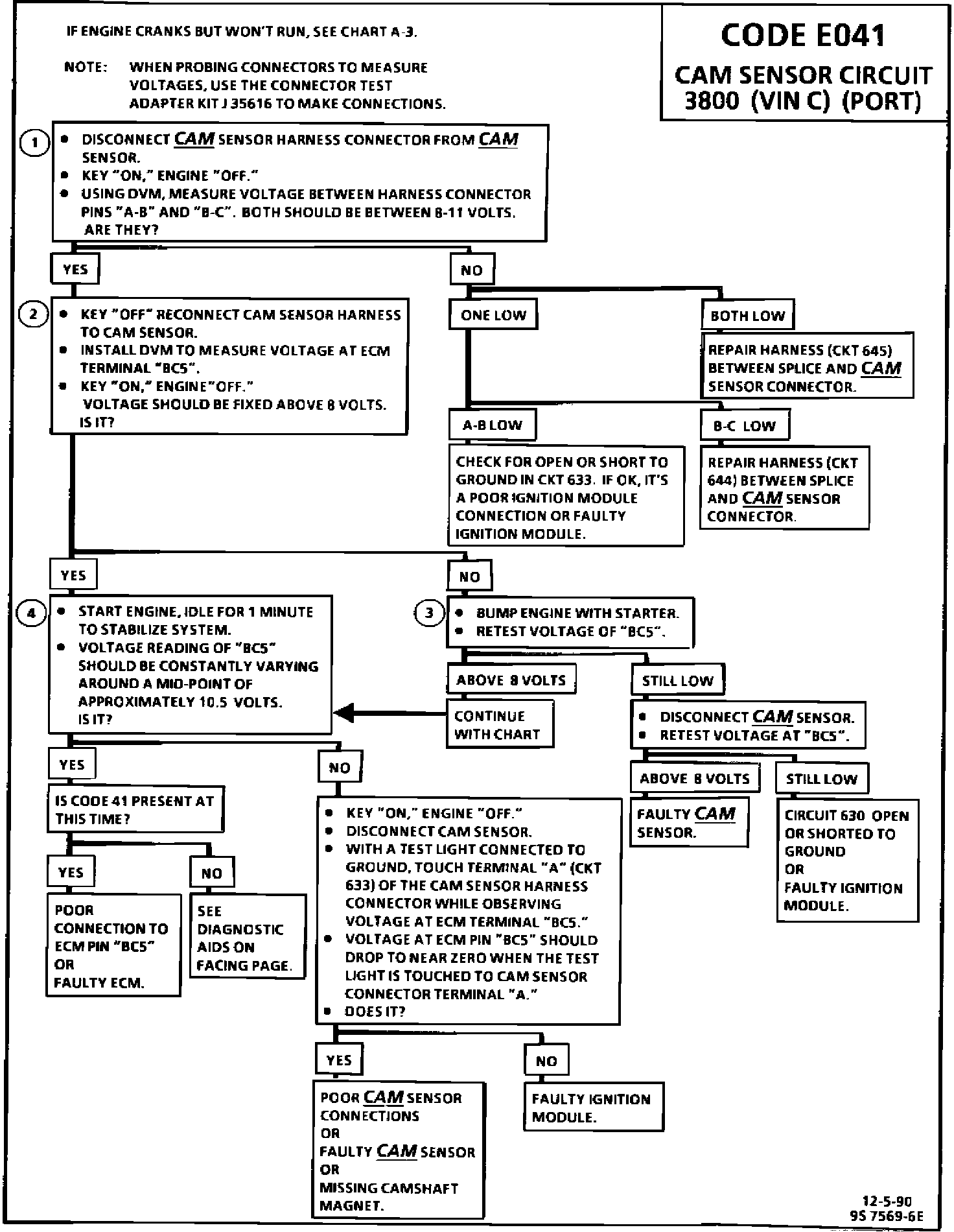 The revised chart addresses the possibility of a faulty ignition module causing Code E041 to be set by not supplying the CAM sensor signal to the ECM.