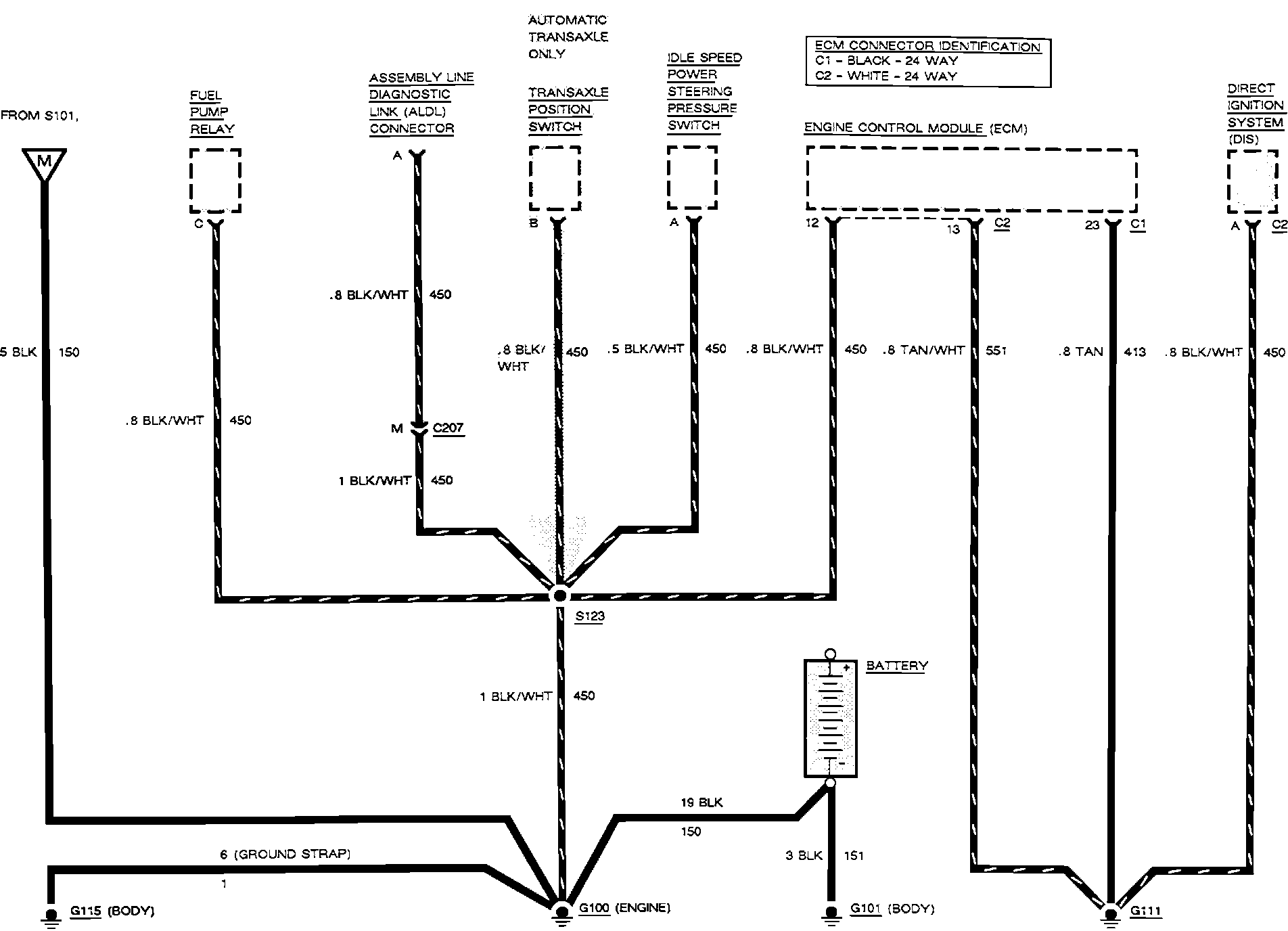 Ground Distribution (G100, G101, G111, G115 & G200 Engine Grounds) W/Auto. Trans: