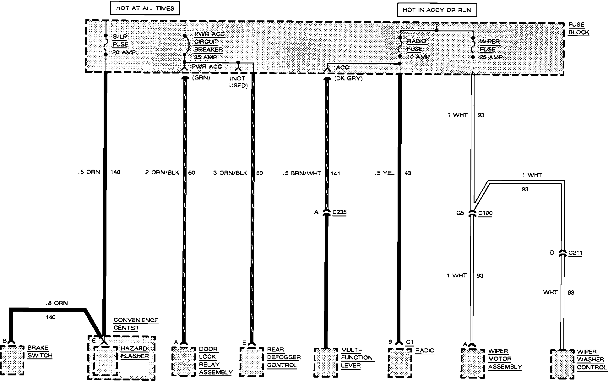 Fuse Block Details (Radio Fuse, S/LP Fuse, Wiper Fuse & PWR ACC Circuit Breaker: