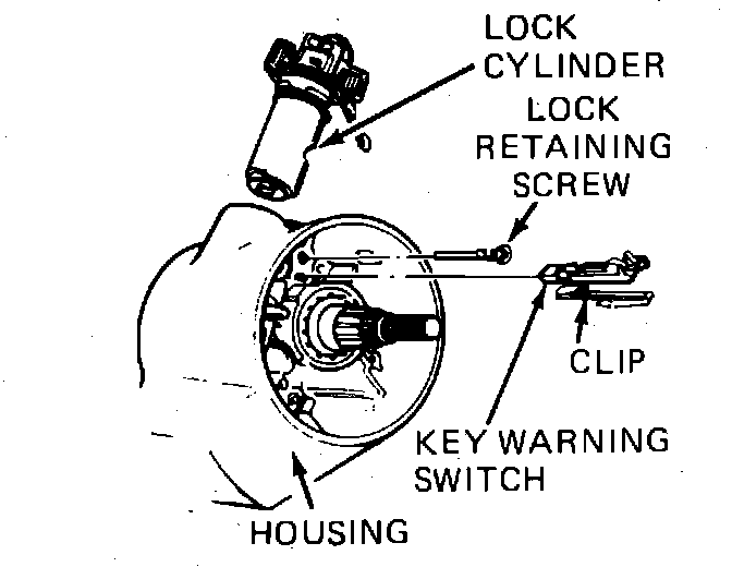 4. Turn lock cylinder to ``Run'' position, then remove the lock cylinder retaining screw and lock cylinder, Fig. 1.
