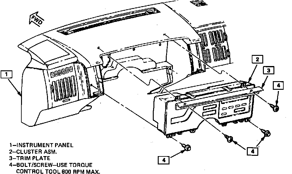 3. Remove instrument cluster trim plate attaching screws, then the trim plate.