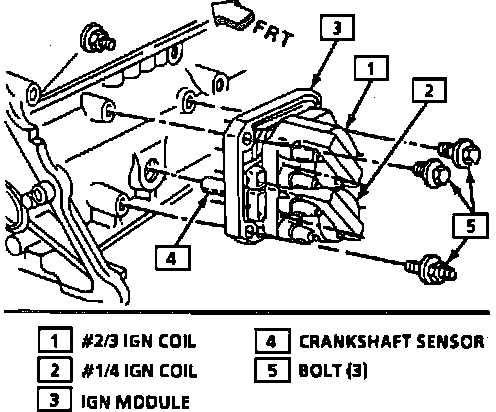5. Reverse procedure to install. Torque coil to ignition coil module to engine attaching bolts to 20 ft. lbs.