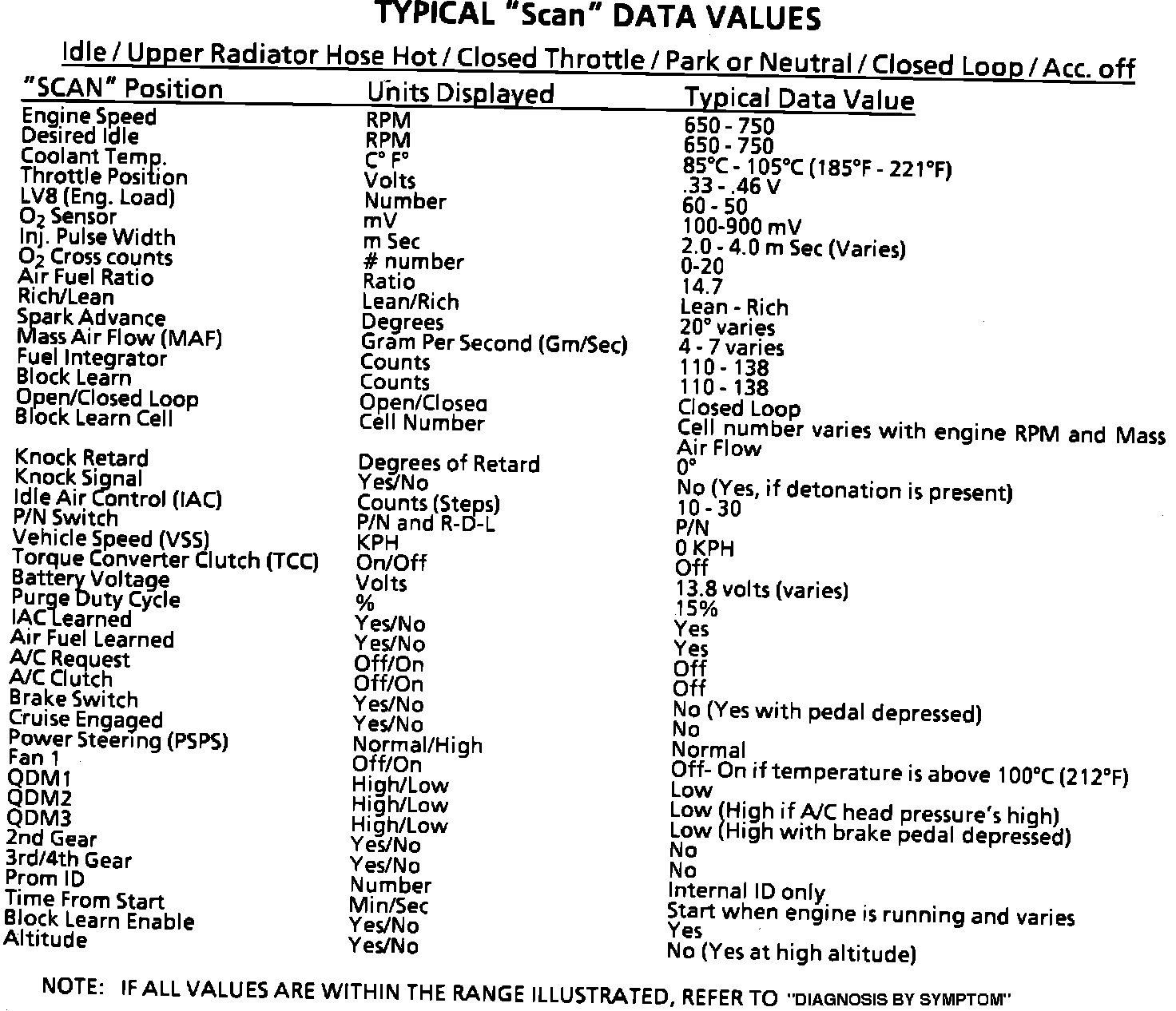 Typical Scan Data Values: