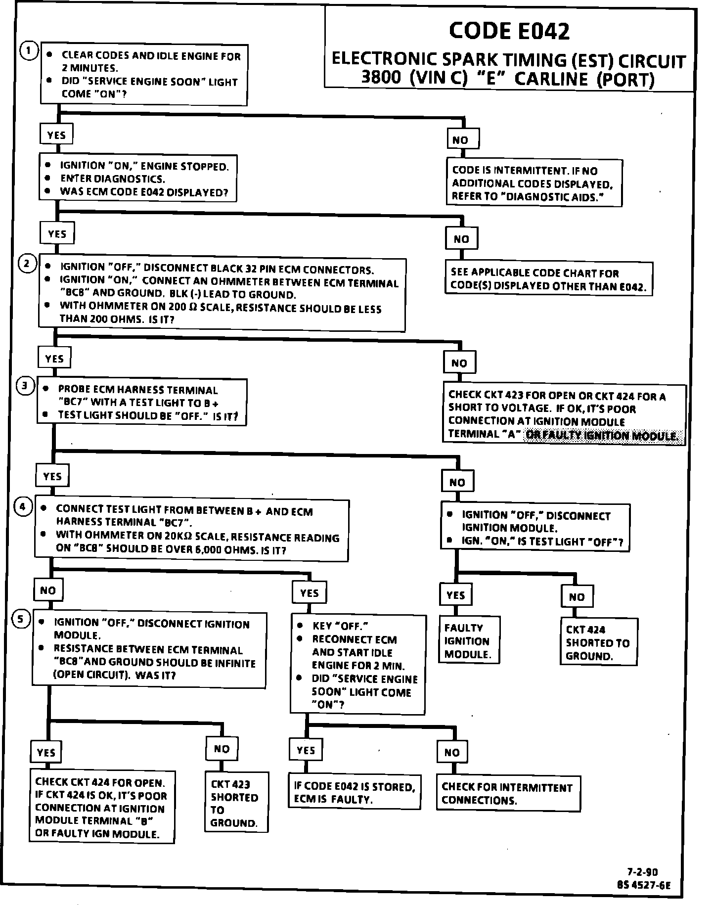 This bulletin is to update the Code E042 Diagnostic Chart on page 8D1-53 in Section 8D1 "ECM Trouble Code Diagnosis" for the 1990 Riviera/Reatta with 3800 (VIN C) engine.