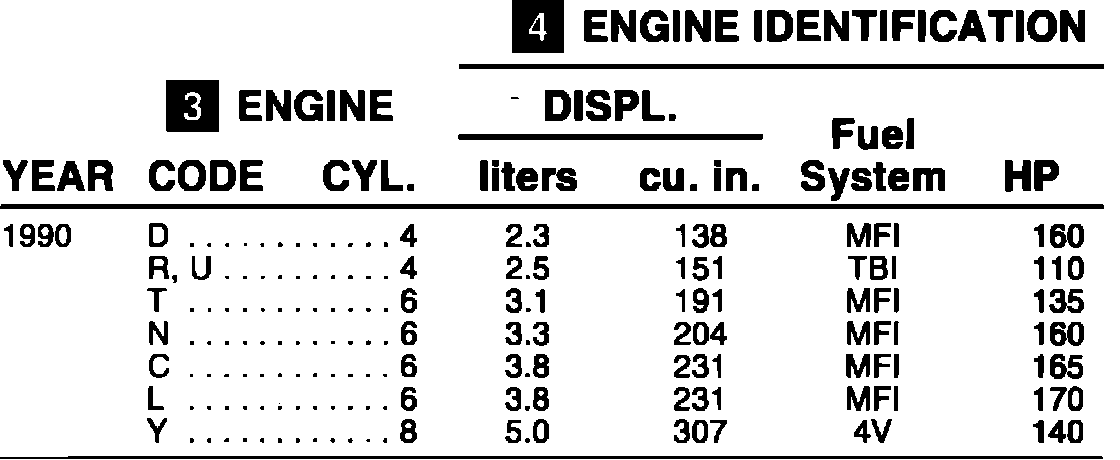 ENGINE IDENTIFICATION 1990: