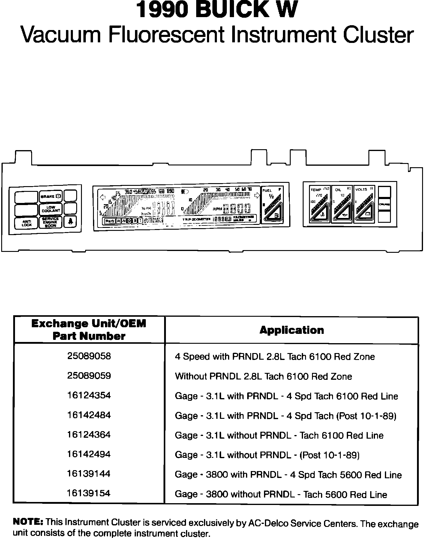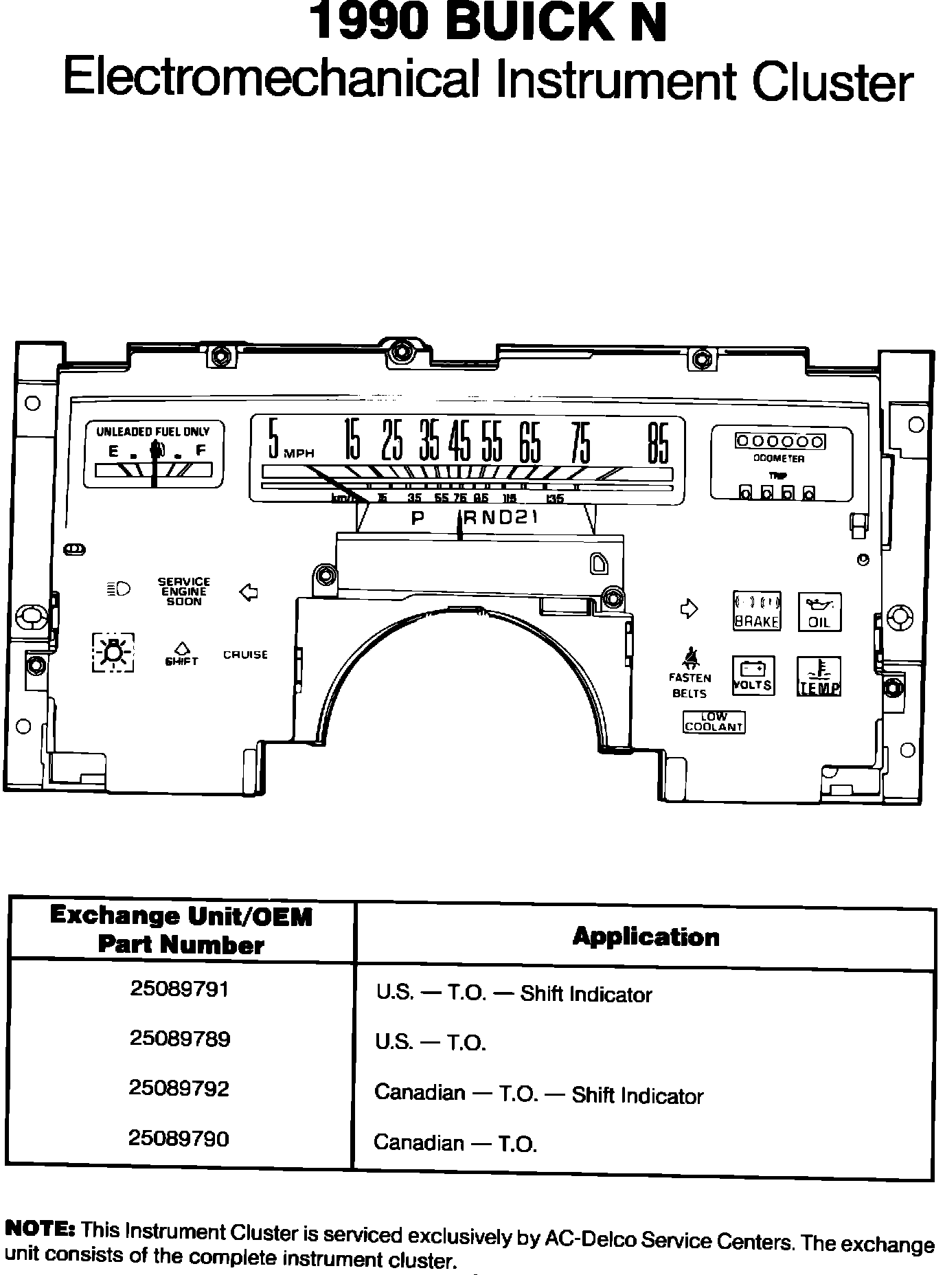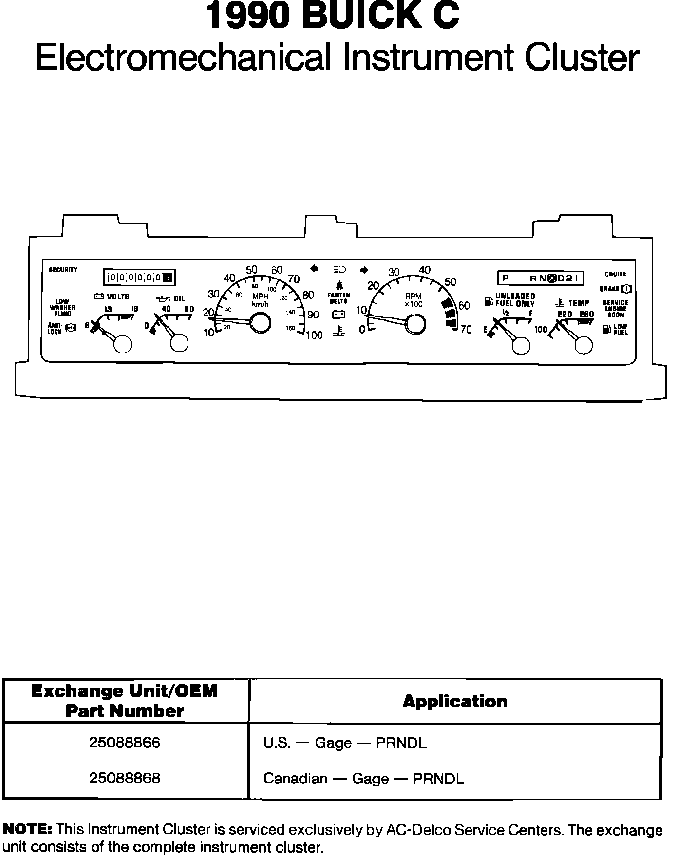 Exchange units are obtained by telephoning one of the authorized AC Delco Service centers listed in this bulletin. If your local center does not have a unit available for pre-exchange, call other centers listed. All centers are authorized to ship to any Buick dealer. Units are shipped with memo billings, via next day UPS, within 24 hours of the request. The memo billings are cancelled when the inoperative instrument cluster is received by the service center from which it was obtained.