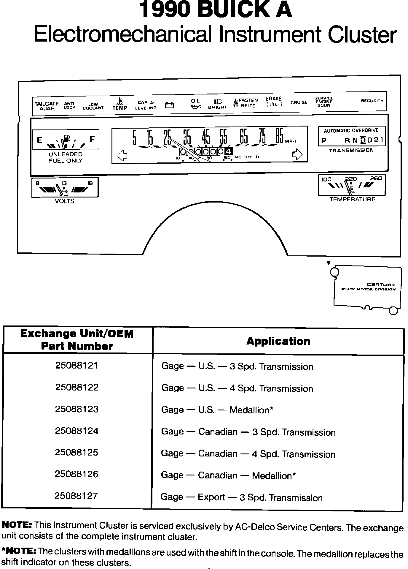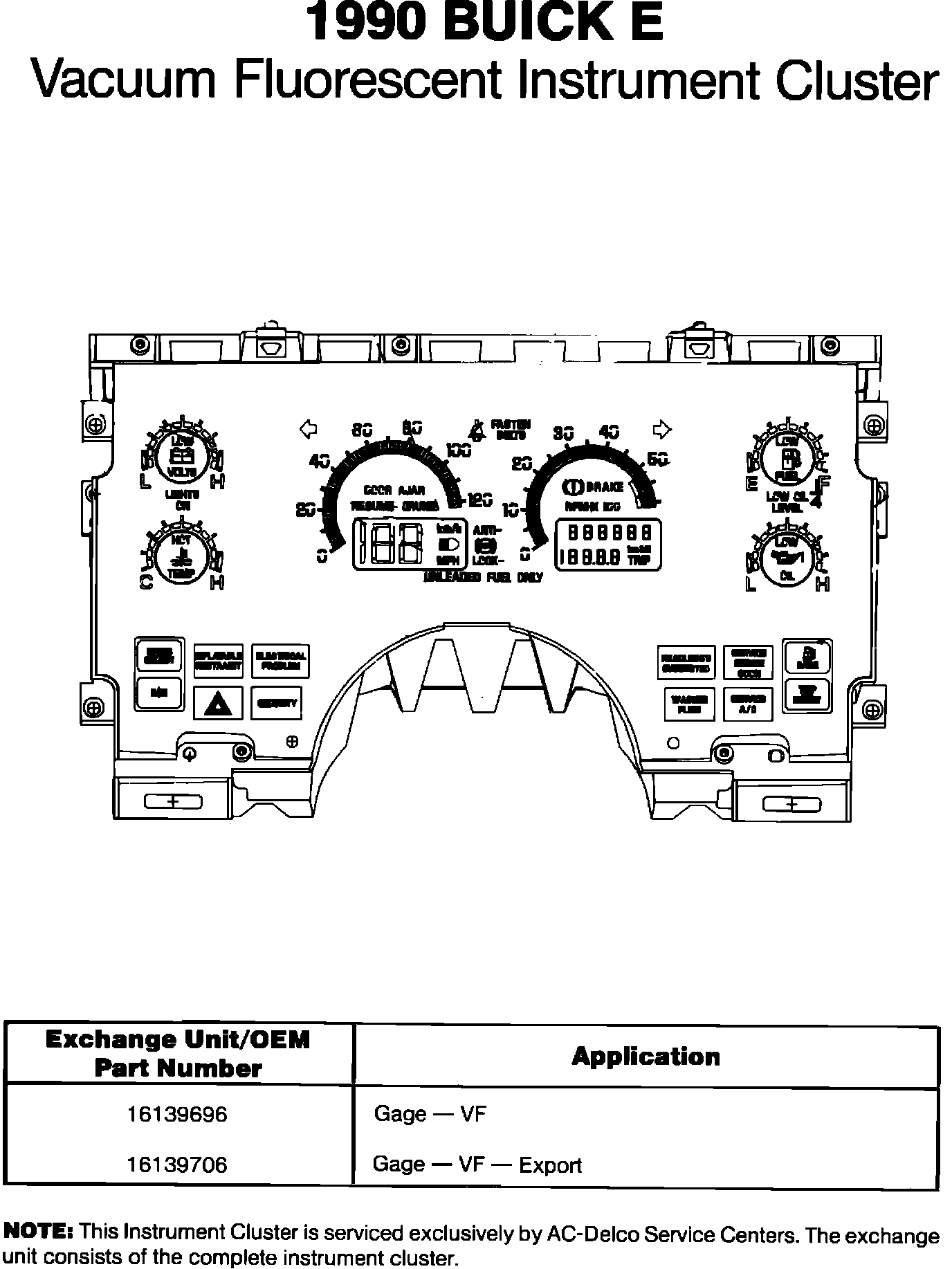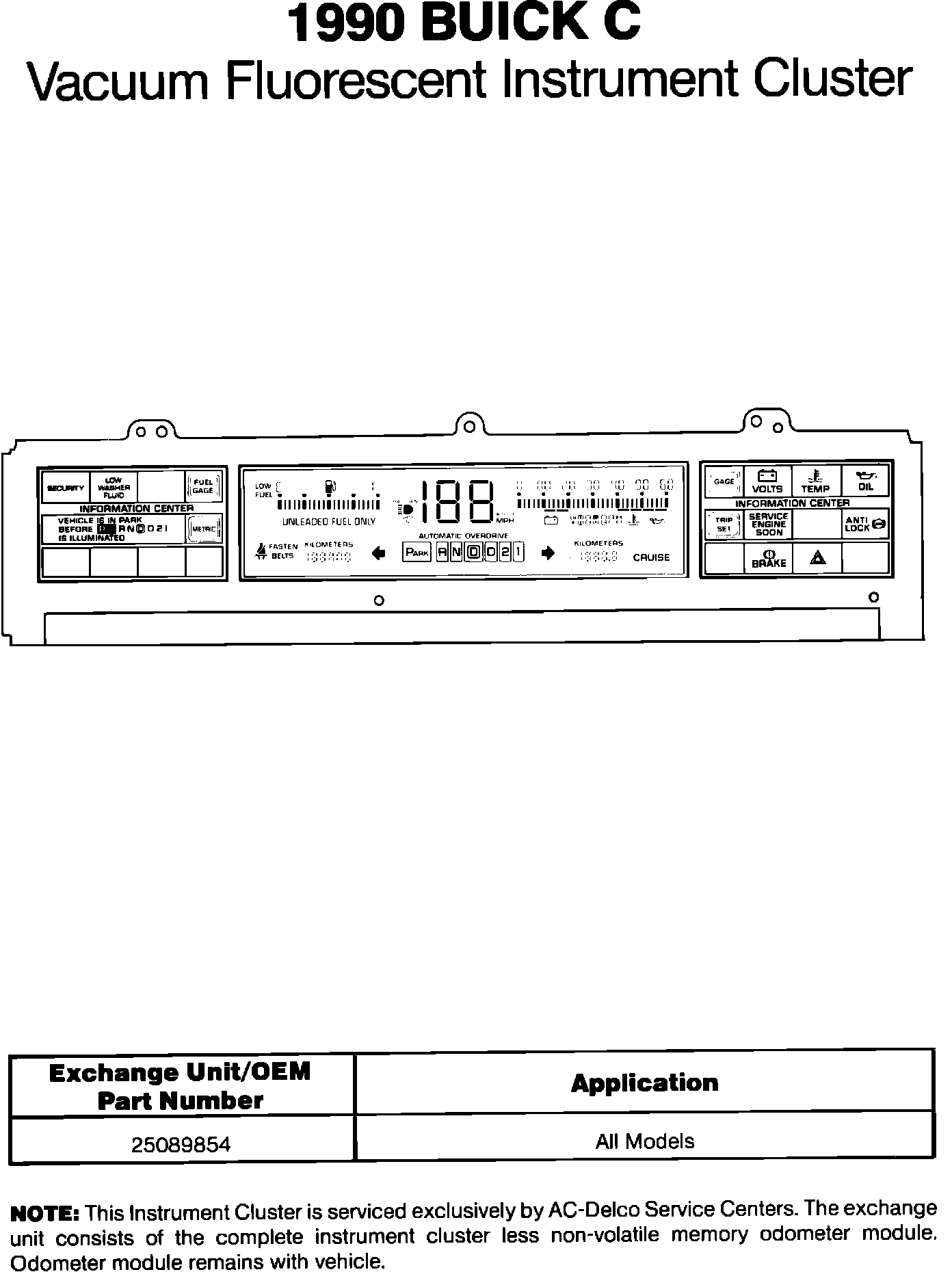 Exchange units are obtained by telephoning one of the authorized AC Delco Service centers listed in this bulletin. If your local center does not have a unit available for pre-exchange, call other centers listed. All centers are authorized to ship to any Buick dealer. Units are shipped with memo billings, via next day UPS, within 24 hours of the request. The memo billings are cancelled when the inoperative instrument cluster is received by the service center from which it was obtained.