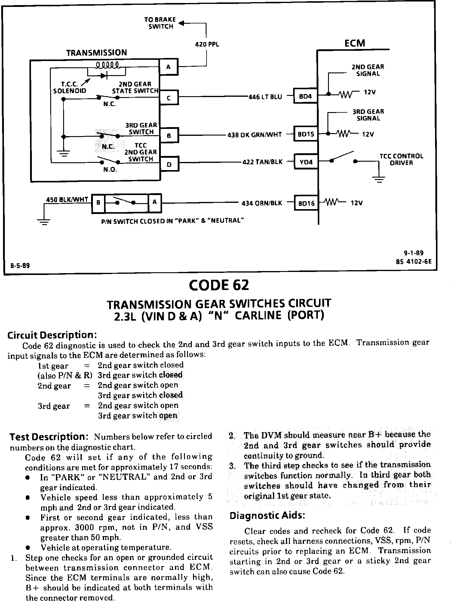 A/T - Revised Code 62 Chart (Gear Switches Circuit)