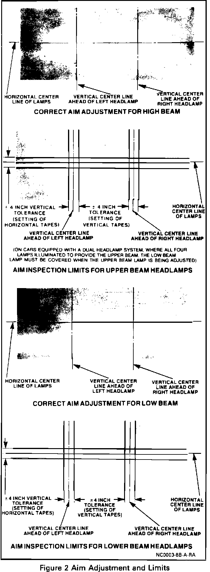 IMPORTANT: Always inspect the following sealed beam and replaceable bulb headlamps on "low beam" only.