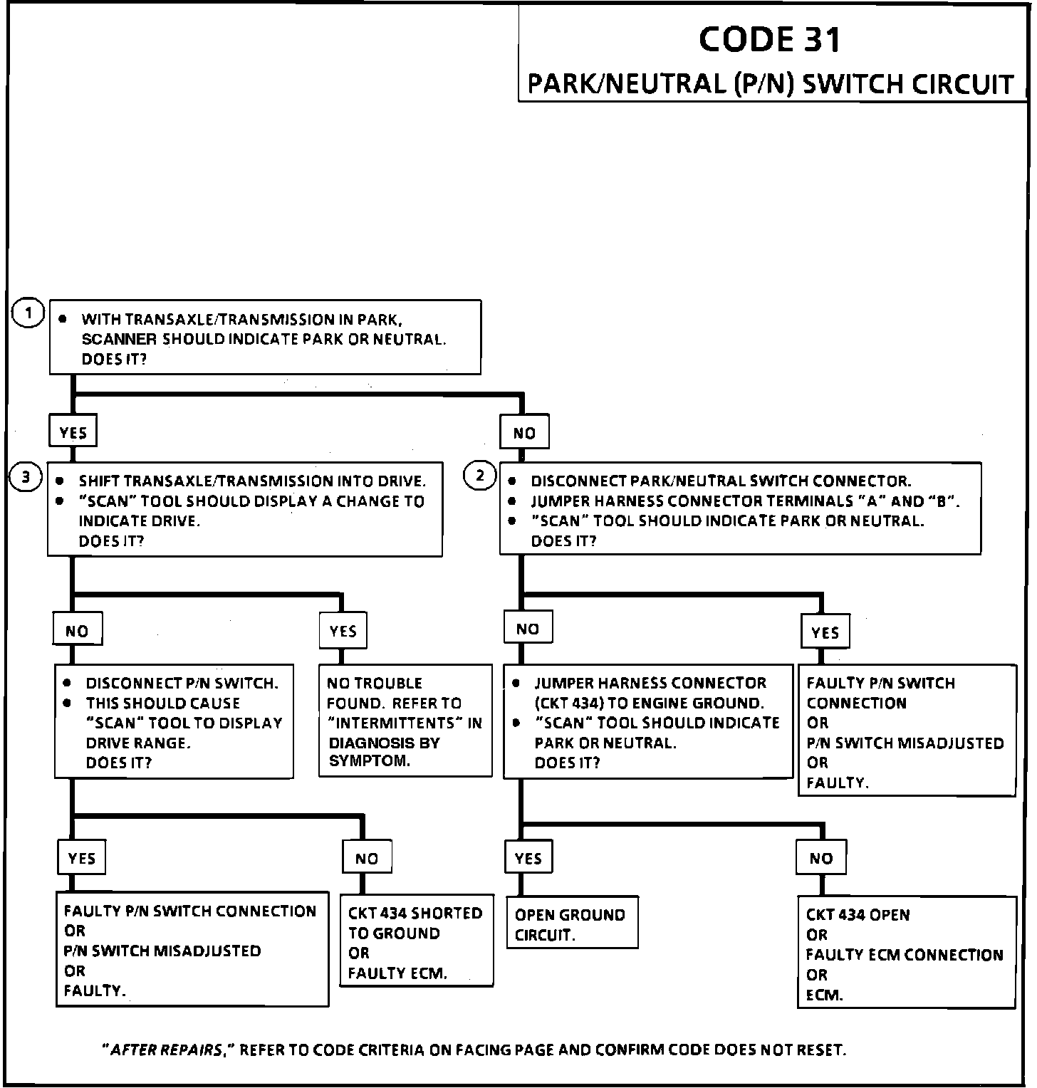 ^ CKT 434 indicates a grounded circuit when transmission in 4th gear, TCC engaged and no Code 29 for 10 seconds.