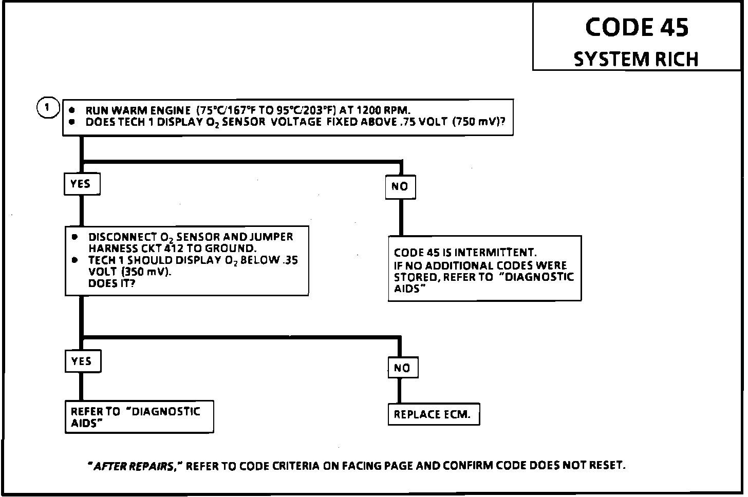 1. Code 45 is set when the 02 sensor signal voltage or CKT 412: