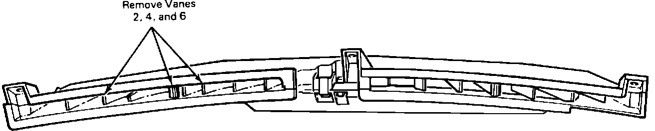 NOTE: No small pieces can fall into the duct or a rattle may result. This is why the vanes must be wrapped with duct tape or equivalent prior to removal. The number four vane also incorporates a boss which must also be wrapped with duct tape and removed while removing the vane.