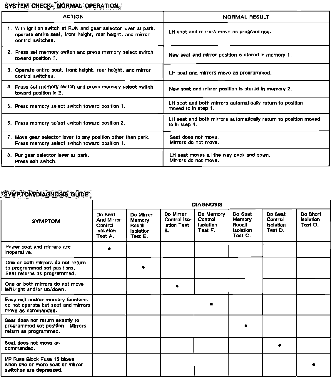 Memory Seat/Mirrors System Check and Symptom Chart: