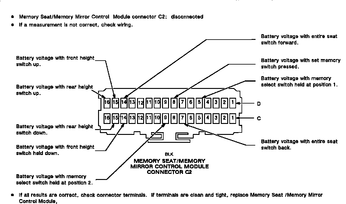 Test I: Memory Seat/Memory Mirror Control Module Input Test: