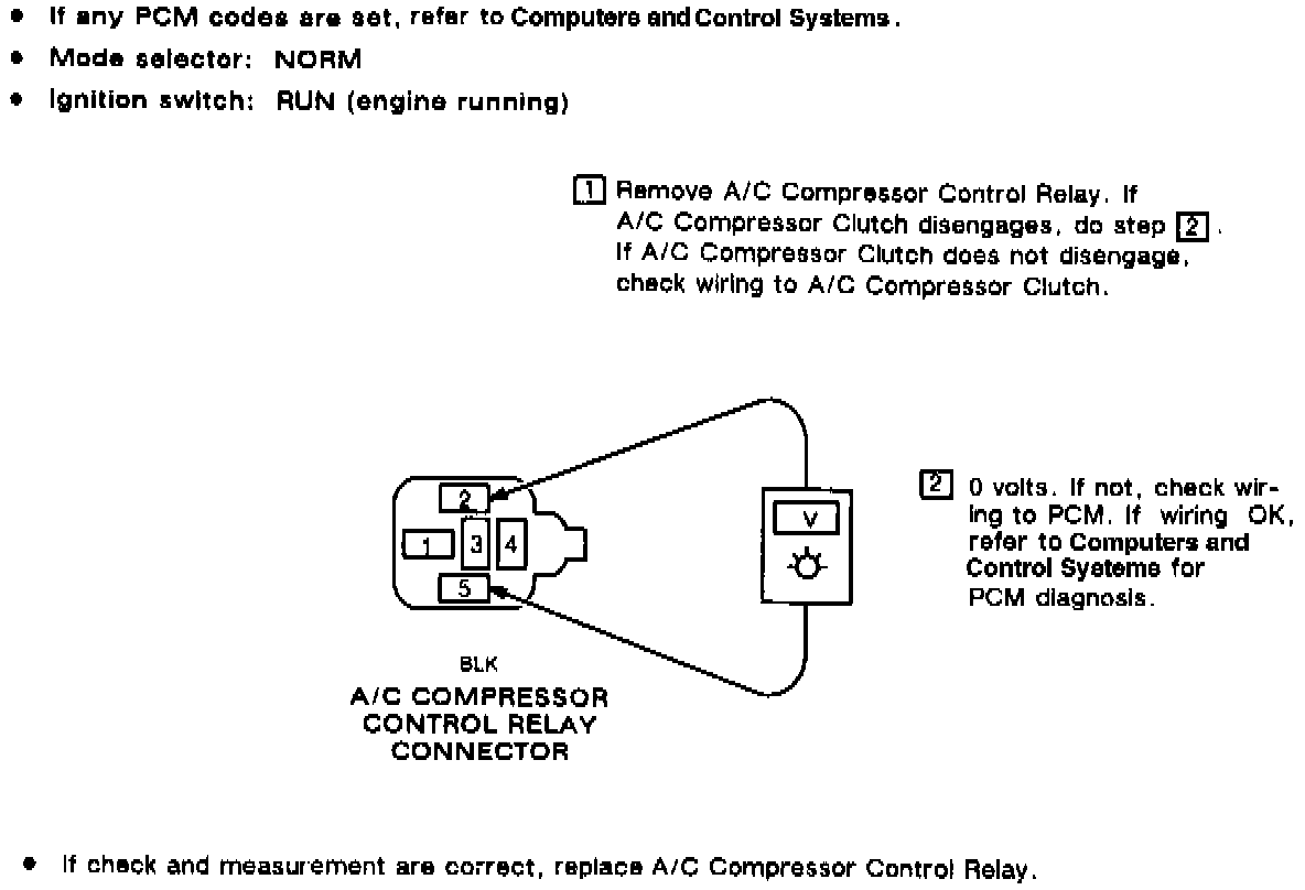 A/C Compressor Control Relay Short Test: