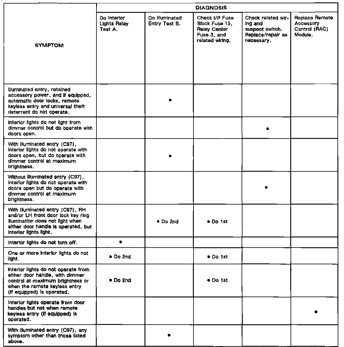 Interior Lights Symptom Chart: