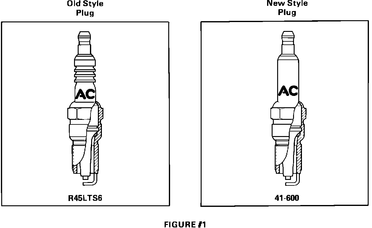 This new spark plug can be visually identified by its smooth ceramic surface, the ridges have been removed (see figure 1). These new spark plugs have a anti-stick material coating baked onto the spark plugs outer ceramic surface. This coating is clear with a slightly waxy feel. To further help identify the new spark plug, the type number has been changed to 41-600 from R45LTS6.