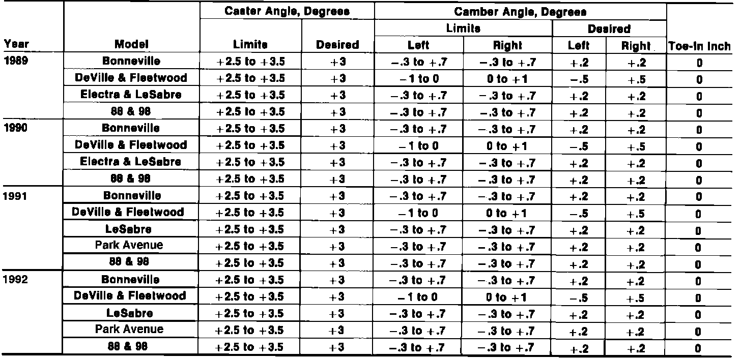 Front Wheel Alignment Specifications: