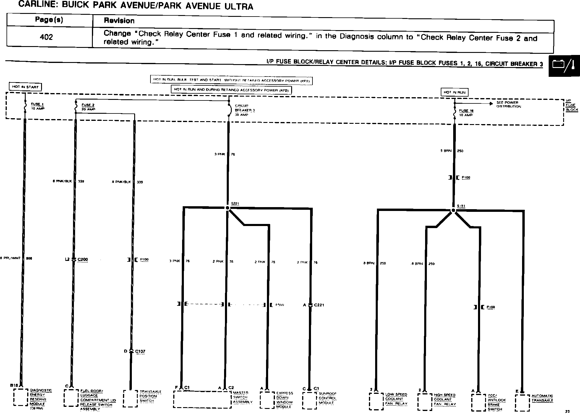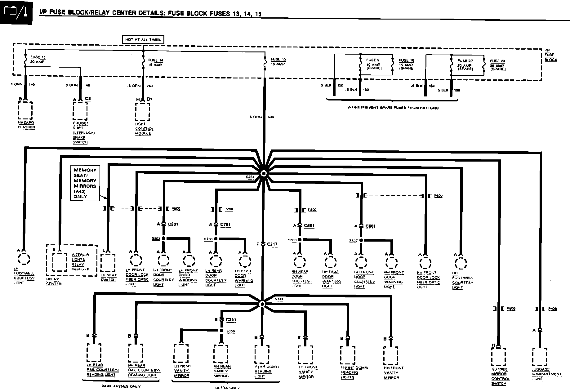 Park Ave & Ultra Fuse Block Fuses 13, 14, 15
