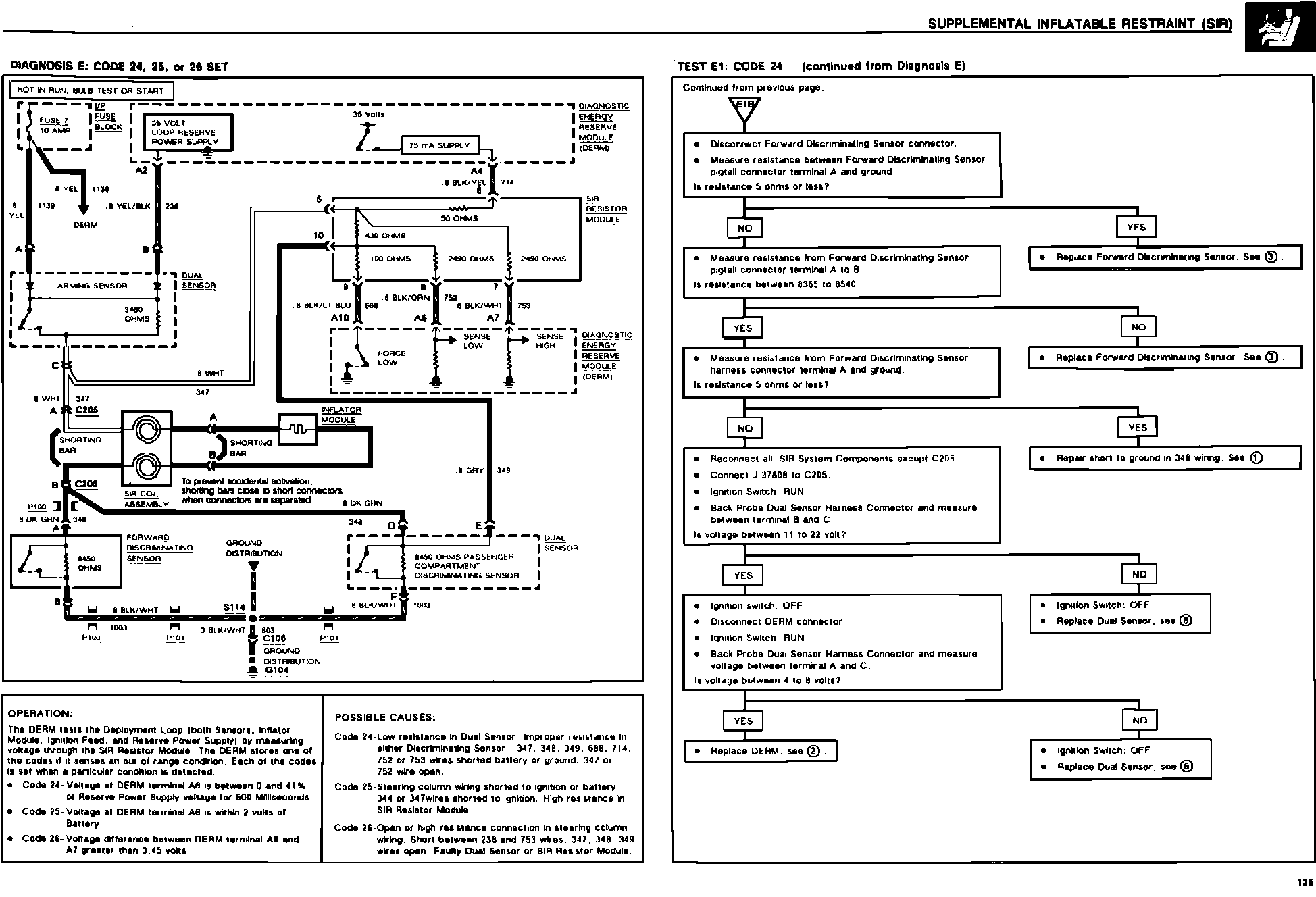 Supplemental Inflatable Restraint (SIR) Diagnosis E: Code 24, 25, 26 SET - Test E1: Code 24