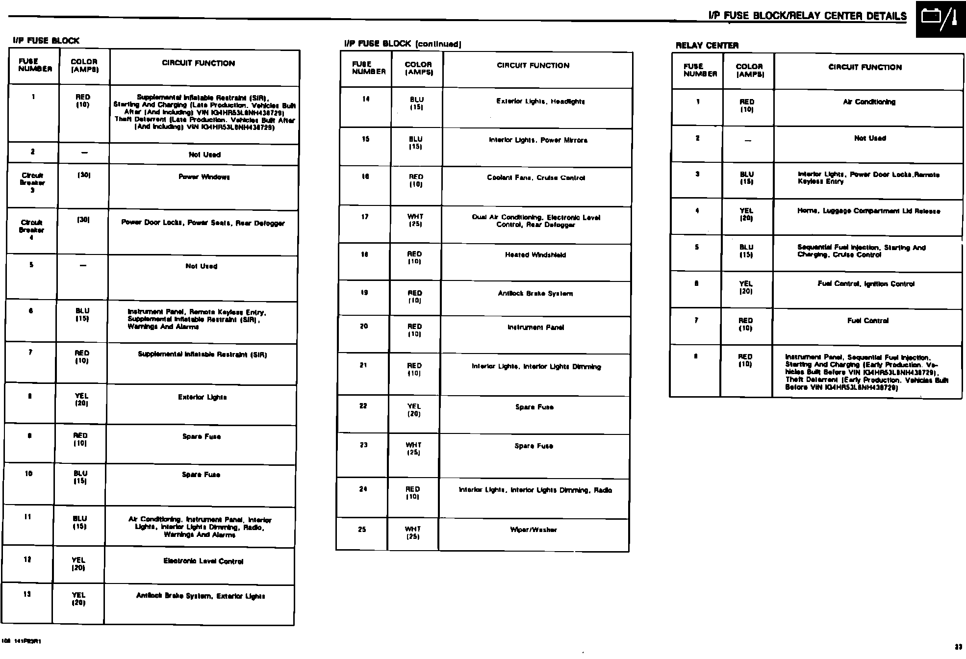I/P Fuse Block/Relay Center Details